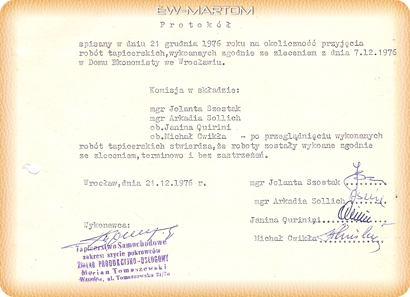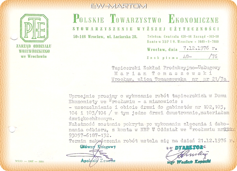 Polskie Towarzystwo Ekonomiczne - zlecenie 1976 rok